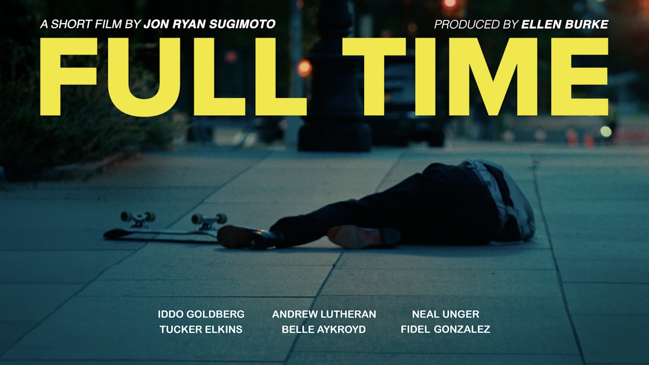 A skater is offered a job by a mysterious businessman. Jon Ryan Sugimoto directs “Full Time,” a social satire on corporate America and modern work culture where a recent high-school graduate is given a lucrative opportunity: to stand in a square all day for the rest of his life. Still in their graduation gowns, three friends hop off a bus and skate the courtyard in front of Brooklyn Borough Hall. As they hangout and banter, they’re suddenly encountered by a slick-haired man in a suit. The man asks if the friends can help with a vague task, and while they remain mostly hesitant, one of the young men agrees. The task simply requires him to stand within the edges of one of the many concrete courtyard panels for several hours. If he does, he will be given a wad of money. Soon, days pass by, minor “promotions” occur, and eventually, life flashes. Unafraid to clearly announce its commentary, Sugimoto’s parable spurs reflection on a well-shared conundrum of life vs. work. -JM. Writer: Jon Ryan Sugimoto. Director: Jon Ryan Sugimoto. Producer: Ellen Burke. DP: Jackson Jarvis. Cast: Andrew Lutheran, Iddo Goldberg, Neal Unger, Belle Aykroyd, Tucker Elkins, and Fidel James Gonzalez.
